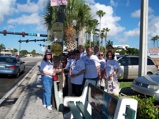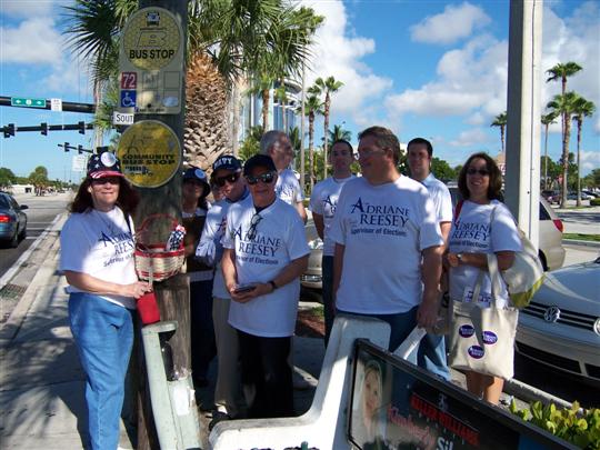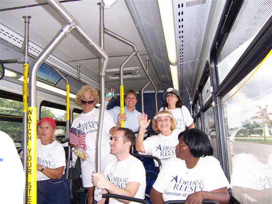 On July 26, 2008 at 9:00am, the Broward County Transit system was the site of an event to stimulate social awareness and interest in the upcoming August 26 election. Adriane Reesey, a candidate for Broward County Supervisor of Elections, called for voters to take notice. The Reesey's "Pieces" Campaign Volunteers from across the county converged to ride the BCT, Route 72. They promoted community awareness and involvement in several social activist causes; among them voting and the environment. Volunteers gathered at 9:00am on Oakland Park Blvd and Federal Highway picking up riders along the way to the Sawgrass Mall. They handed out American flags, Reese's Peanut Butter Cups, and Reesey t-shirts, as they rode from east to west and points between on the Broward bus.